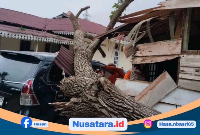 Hujan deras disertai angin kencang melanda Kota Bengkulu, Senin (16/2/2026) sore, menyebabkan sejumlah pohon tumbang di beberapa titik dan mengakibatkan kerusakan kendaraan serta bangunan rumah warga.